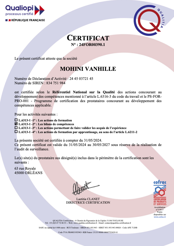 12 heures d’accompagnement soit 6 séances de 2 heures en face à face en présentiel / distanciel réparties sur une durée de 4 mois